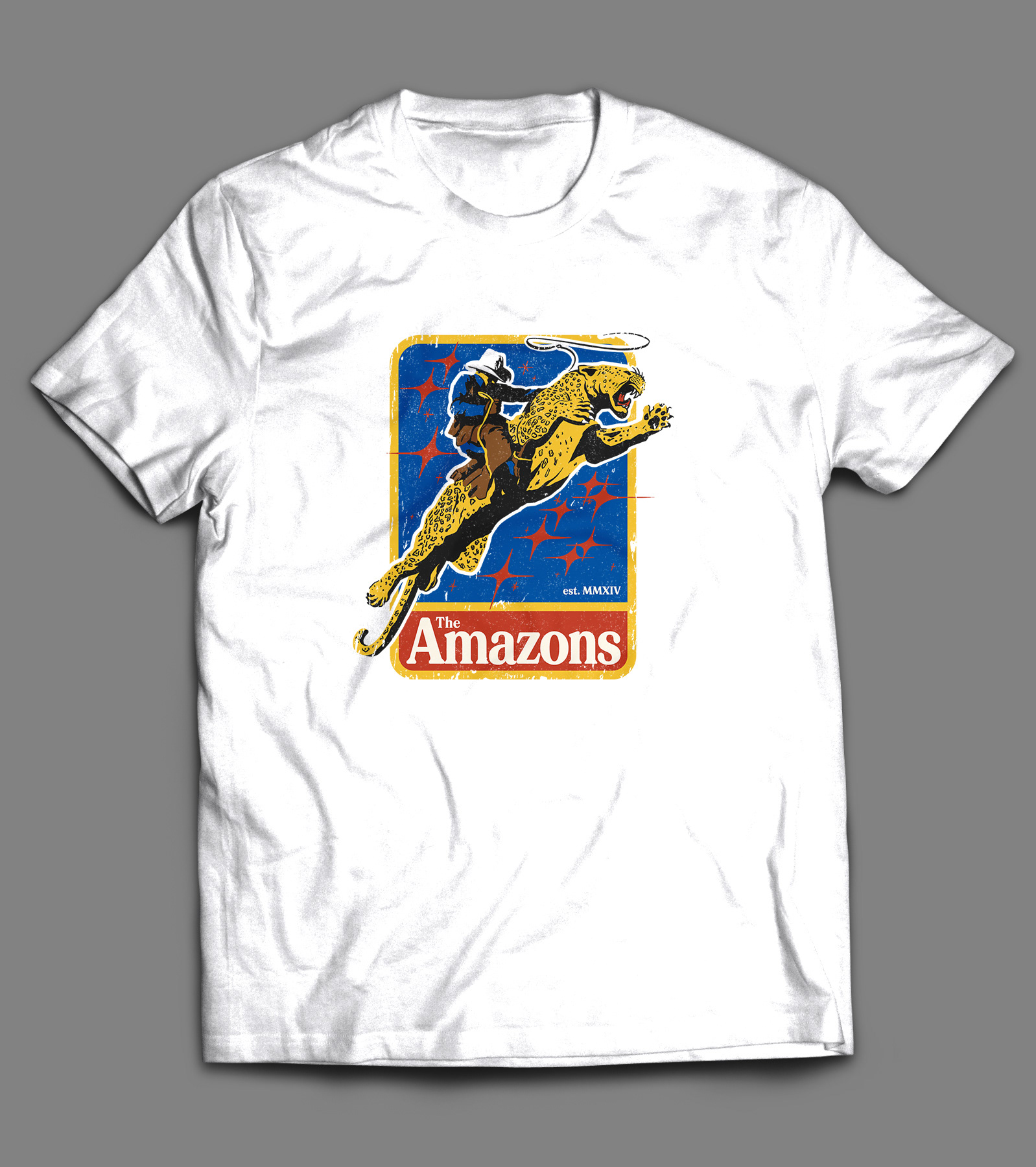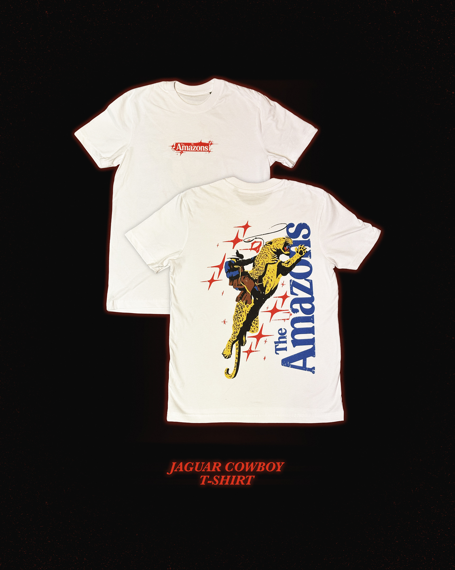 'Jagboy' T-Shirt design, 21st Century Fiction Scarf design, the 21st Century Fiction Book, foil print and store images for The Amazons' merchandise.